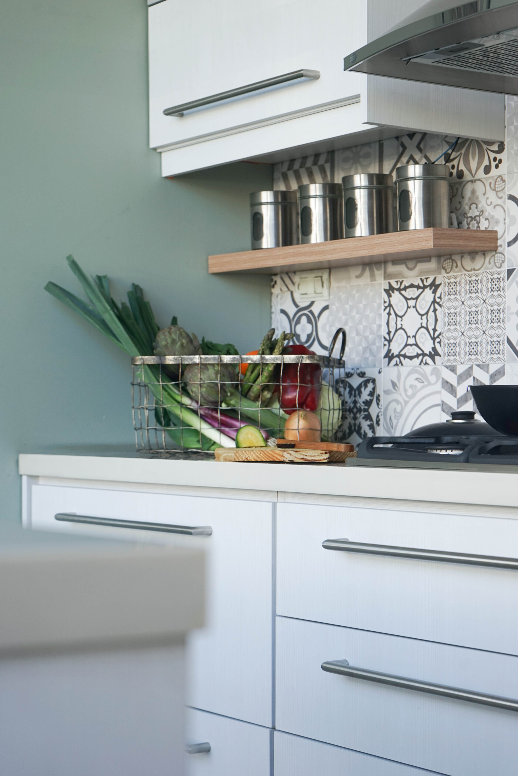 El diseño está pensado para mejorar la experiencia en la cocina, ofreciendo espacios de guardado accesibles y bien distribuidos. Las estanterías abiertas y las superficies despejadas permiten un uso más intuitivo y cómodo del espacio.
